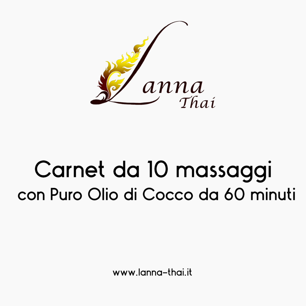 Comodo Carnet da 10 Massaggi con Puro Olio di Cocco da 60 minuti, da utilizzare quando si preferisce presso il nostro centro Lanna Thai.